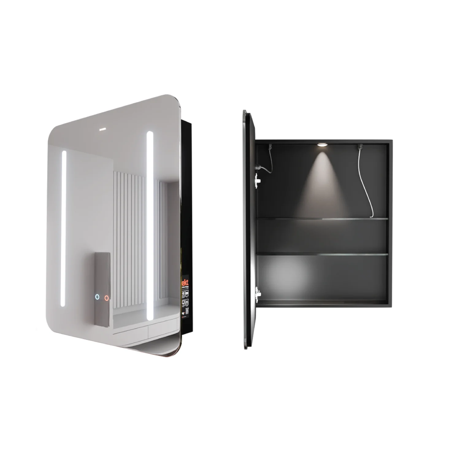 - Frameless bathroom mirror cabinets