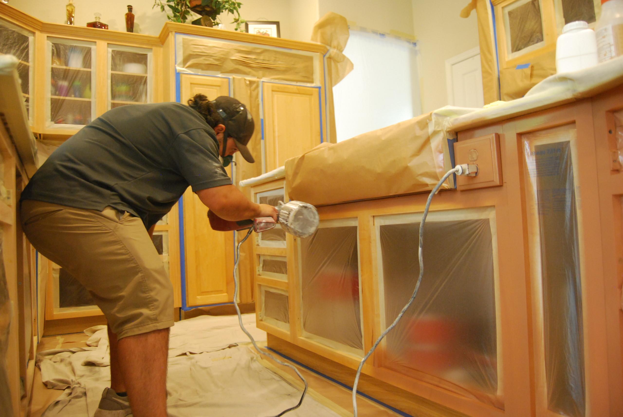 Built in refinishing follows similar steps to cabinet refinishing but with the units attached to walls. All items are removed from shelves and drawers. Hardware is removed and labeled. Surfaces are cleaned and degreased thoroughly. Sanding is done carefully in place. Primer and paint are applied with attention to edges and corners.